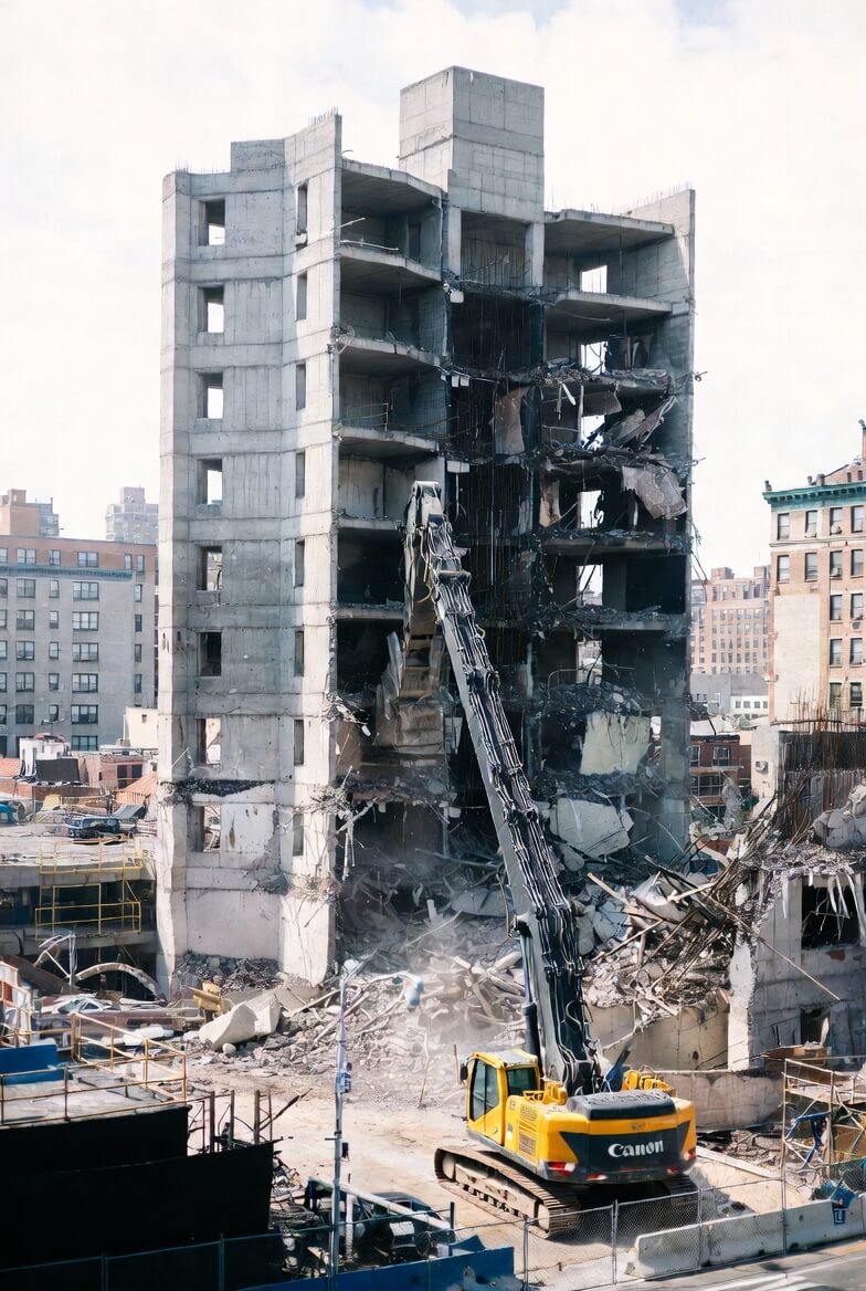 Bella Contracting is NYC's premier demolition contractor, specializing in complex projects across Manhattan, Brooklyn, the Bronx, Queens, and Staten Island. With over 25 years of experience, our licensed and insured teams provide expert commercial demolition, interior gut-outs, and heavy industrial site clearing. As a top-rated demolition company in New York City, we are equipped for the unique challenges of urban projects, from tight spaces to high-traffic areas. Our fleet of modern heavy equipment and experienced crews are available 24/7 for emergency response. Contact us today for a free, professional estimate on your next NYC project.